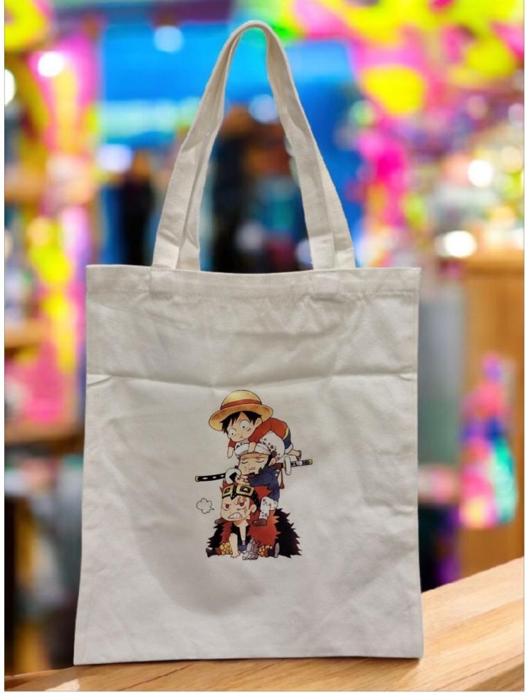 حقيبة قماشية بتصميم جذاب ومحبوب، تحمل طبعات الشخصية الكرتونية الشهيرة لوفي . تتميز الحقيبة بلونها االابيض الذي يضيف إليها لمسة من البهجة. إنها عملية ومتعددة الاستخدامات، ومثالية للحمل اليومي للمدرسة أو التسوق أو النادي. تصميمها الفريد يجعلها إضافة مميزة لمجموعتك من الإكسسوارات.