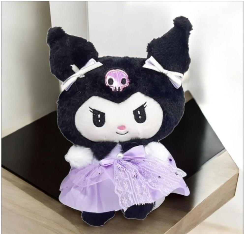 دمية محشوة بشكل حيوان لطيف لها وجه دائري وعيون بسيطة وفم صغير جداً. ترتدي فستاناً مزخرفاً بتفاصيل أنيقة مع ربطة على الرأس تزيد من جاذبيتها. تصميمها يوحي بالبراءة والمرح مما يجعلها محبوبة للأطفال والكبار. مناسبة كهدية مميزة تضيف لمسة من الدفء والبهجة.
