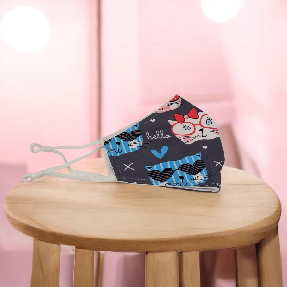 قناع وجه من القماش بنمط قطط ورسالة "hello" باللون الكحلي