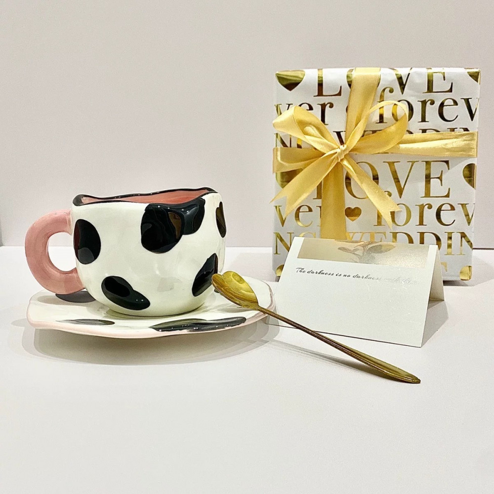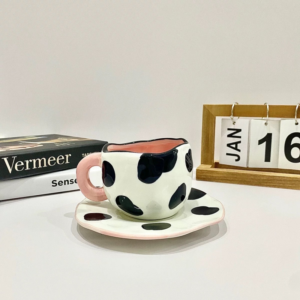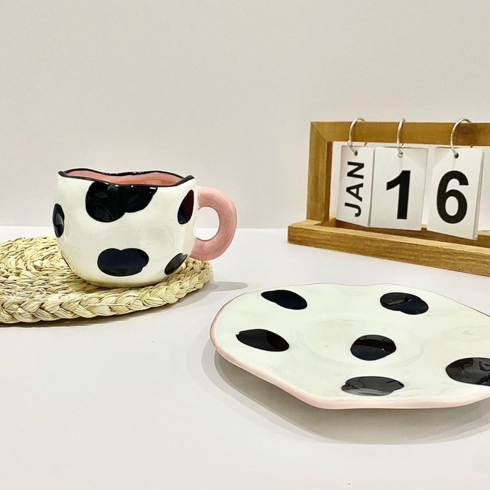 استمتعي بقهوتكِ الصباحيّة مع هذا المج الرّائع. مصنوع من خامات الخزف عالية الجودة ومصمم بطبعات تجريدية باللون الأسود الجذاب ومقبض منحني لحمله بشكل مريح، كما يمكنك تنظيفه بسهولة في غسالة الصحون.