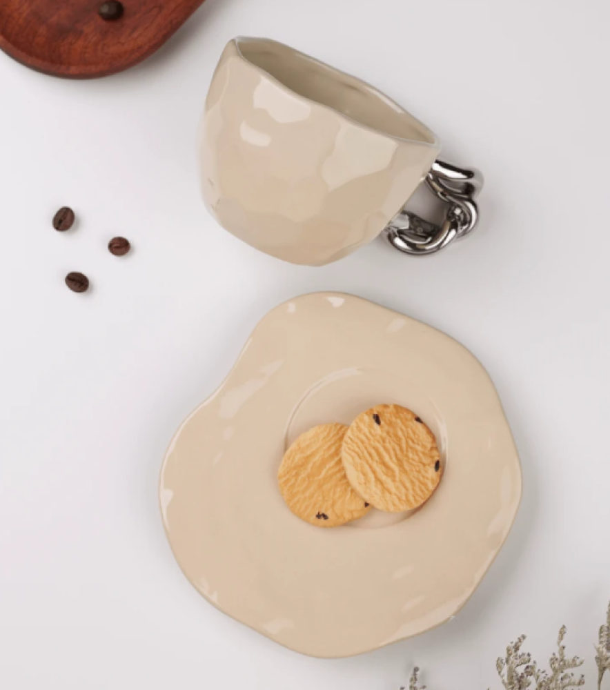احتسي رشفات من الشاي السّاخن وتلذّذي به مع هذا الفنجان المميّز. يأتي مع صحن بلون ناعم، ومصنوع من خامات السيراميك عالية الجودة، آمن للطّعام وتصميمه غاية في الجاذبيّة.