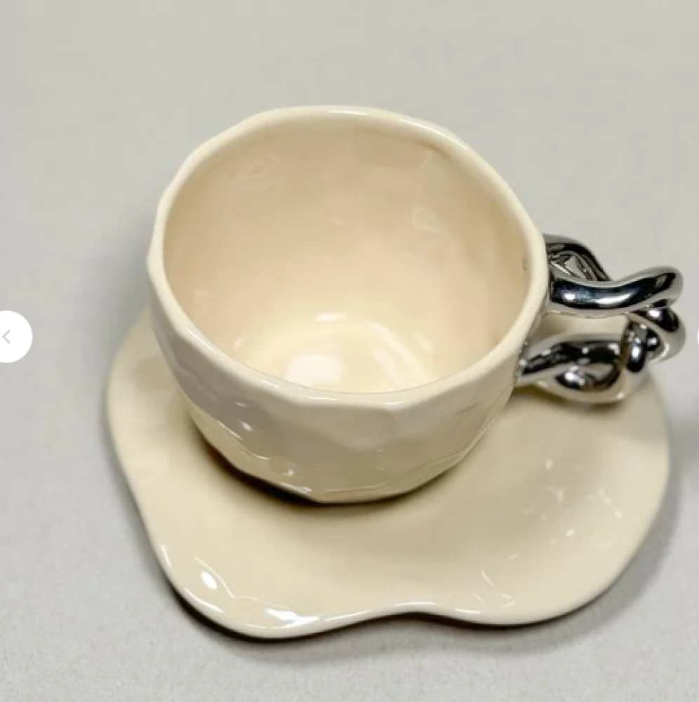 كوب بجسم متعرج ومقبض ملتوي
