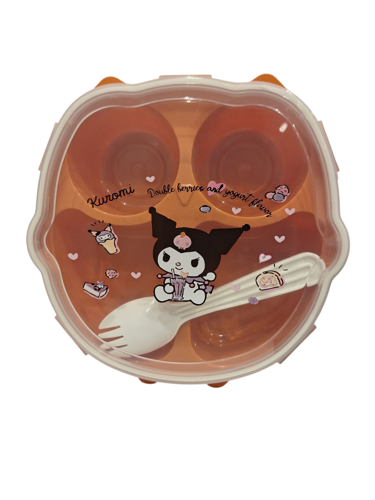 حافظة طعام مريحة وعملية، تتميز بتصميم مقسم لتنظيم الوجبات بشكل منفصل، مع غطاء محكم لحفظ الطعام. مزينة برسومات شخصيات كرتونية جذابة ومحبوبة. هذه الحافظة مثالية لوجبات الأطفال في المدرسة أو أثناء النزهات، وتجمع بين الأداء الوظيفي والتصميم المبهج.