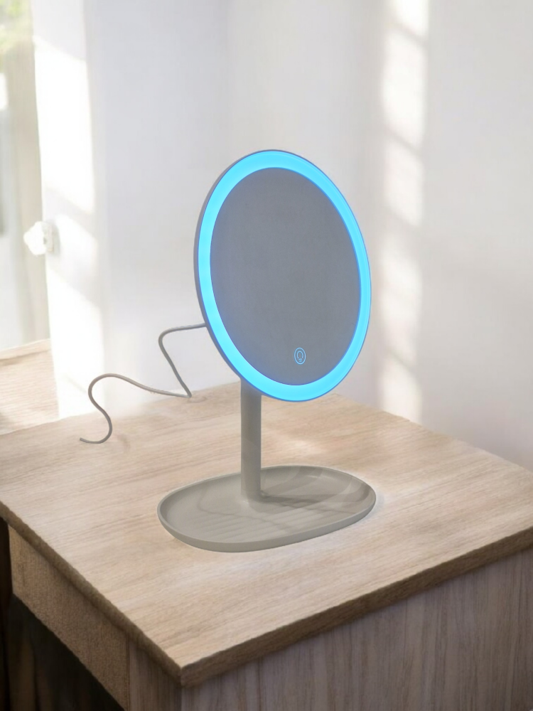 مرآة أنيقة مزودة بإضاءة مدمجة تمنح رؤية واضحة ومريحة,تصميم عملي يبرز التفاصيل بدقة ويضيف لمسة عصرية للمكان,إضاءة متوازنة تساعد على الاستخدام اليومي بكل سهولة,مثالية لغرف النوم أو الزينة لإحساس بالفخامة والراحة.