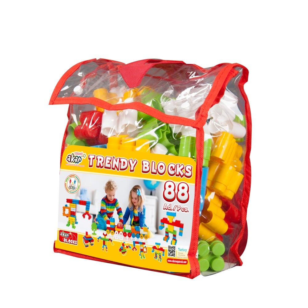 اسم المنتج: 88 قطعة تريندي بلوك (حقيبة) / 97-634 مادة المنتج: البلاستيك العمر المناسب: فوق ثلاث سنوات وزن المنتج: 0.592 كغ أبعاد المنتج: 23 x12 x28(طول عرض ارتفاع) …… .. تحذير: لا يناسب الأطفال تحت سن الثالثة لاحتوائه على قطع صغيرة